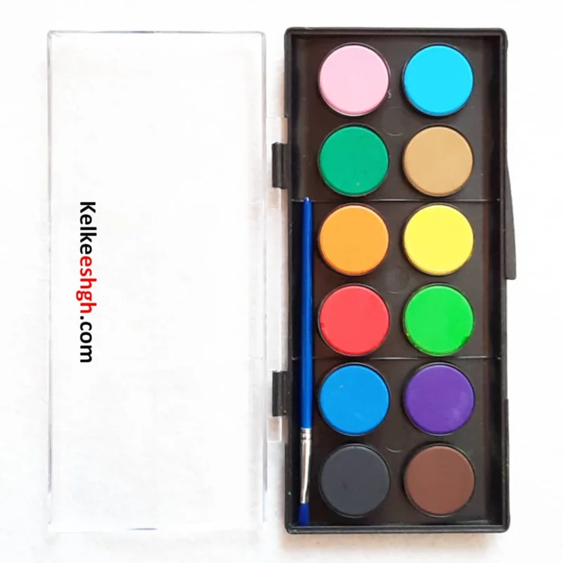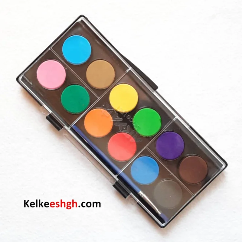 دارای 12 قرص رنگ به همراه یک عدد قلمو