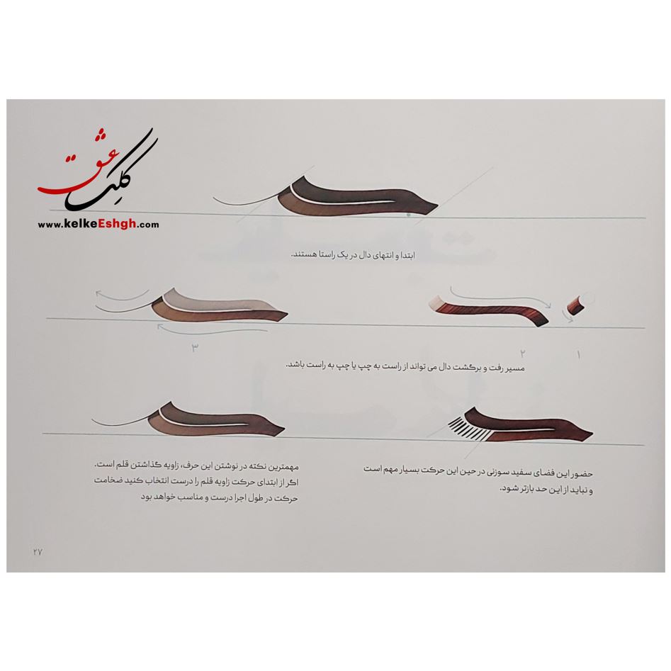 این کتاب راهنمایی جامع برای یادگیری خط کوفی نوین است و به آموزش حروف الفبا، کلمات، اتصالات، سطر و دو سطری، کلاف نویسی، حروف تفننی و ترکیبهای خلاقانه و توضیحات دقیق از همه حرکات قلم همراه با QR ویدیویی می پردازد. در ادامه می توان توضیحات ساختاری نوشتار و نمونه های نقاشیخط اجرایی به خط کوفی را مشاهده نمود. این کتاب در قطع A4 افقی و 200 صفحه، چاپ تمام صفحات 5 رنگ متالایز به چاپ رسیده است و منبعی مناسب برای هنرجویان خوشنویسی، طراحان گرافیک و علاقه مندان به تایپوگرافی معاصر است.