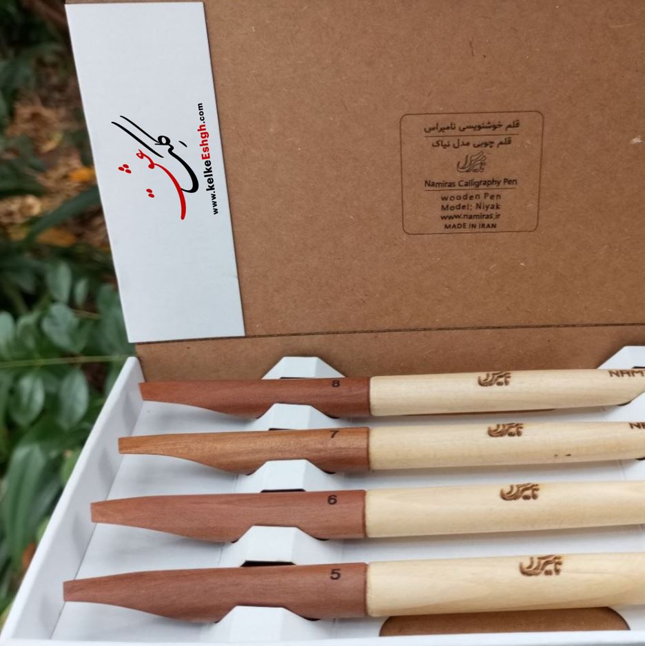 قلمهای چوبی نیاک توسط استاد اشرفی و با برند نامیراس معرفی شد. محصولی بینظیر که سالها جای آن در بین ادوات و ابزارهای هنر خوشنویسی خالی بود. معرفی این ابزار و قلمهای چوبی خوشنویسی فارسی که جایگزینی قابل برای قلمهای نی و قلمهای سنتی به شمار میآمدند به مرور جای خود را باز نمودند. قلمهای چوبی مدل نیاک در اندازههای مختلف دانگهای 5 و 6 و 7 و 8 میلیمتر تولید شده است. نیاک یک واژه به زبان پهلوی (فارسی میانه) است و در زبان فارسی دری نیا گفته می شود. از ویژگیهای قلمهای نیاک نامیراس آن است که مرکب رسانی خیلی خوبی دارد و به دلیل مشابهت زیاد با قلمهای نی برای خوشنویسی نستعلیق بسیار مناسب است و این امر آن را از بقیه متمایز میسازد. مرکب رسانی خوب این قلم کمک می کند تا بتوانید کشیدگی ها را به راحتی اجرا کنید.فروشگاه هنری کلک عشق افتخار دارد به عنوان نمایندگی برند نامیراس در معرفی این محصول ناب پیشگام باشد.